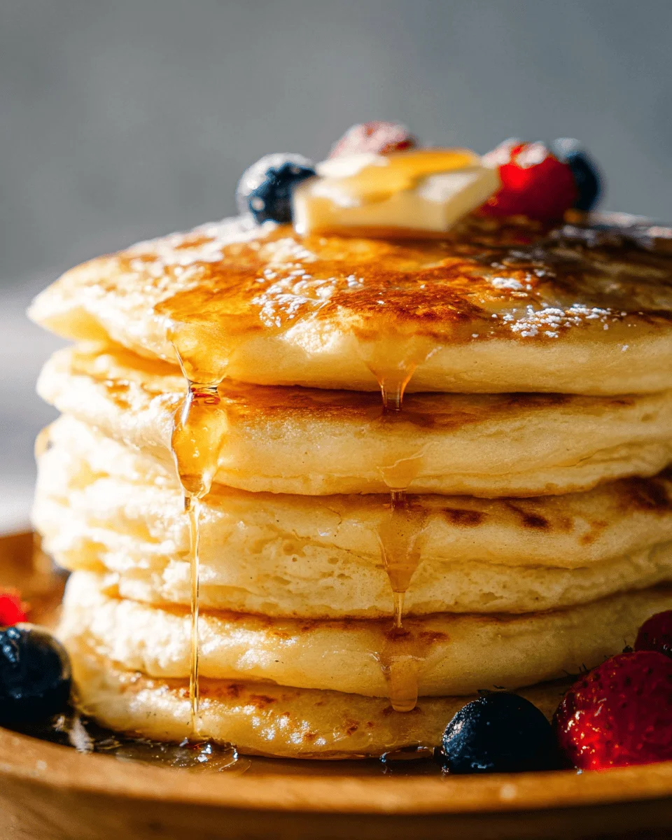 Indulge in the ultimate breakfast comfort with Grandma’s Homemade Pancakes. These fluffy, golden pancakes are a family favorite, perfect for cozy weekend brunches or quick weekday meals. With their light and airy texture, they pair beautifully with a variety of toppings—from classic maple syrup to fresh berries and whipped cream. This easy-to-follow recipe encourages customization, allowing everyone to create their own delicious stack. Get ready to delight your loved ones with these delightful pancakes that are sure to bring smiles to the breakfast table.